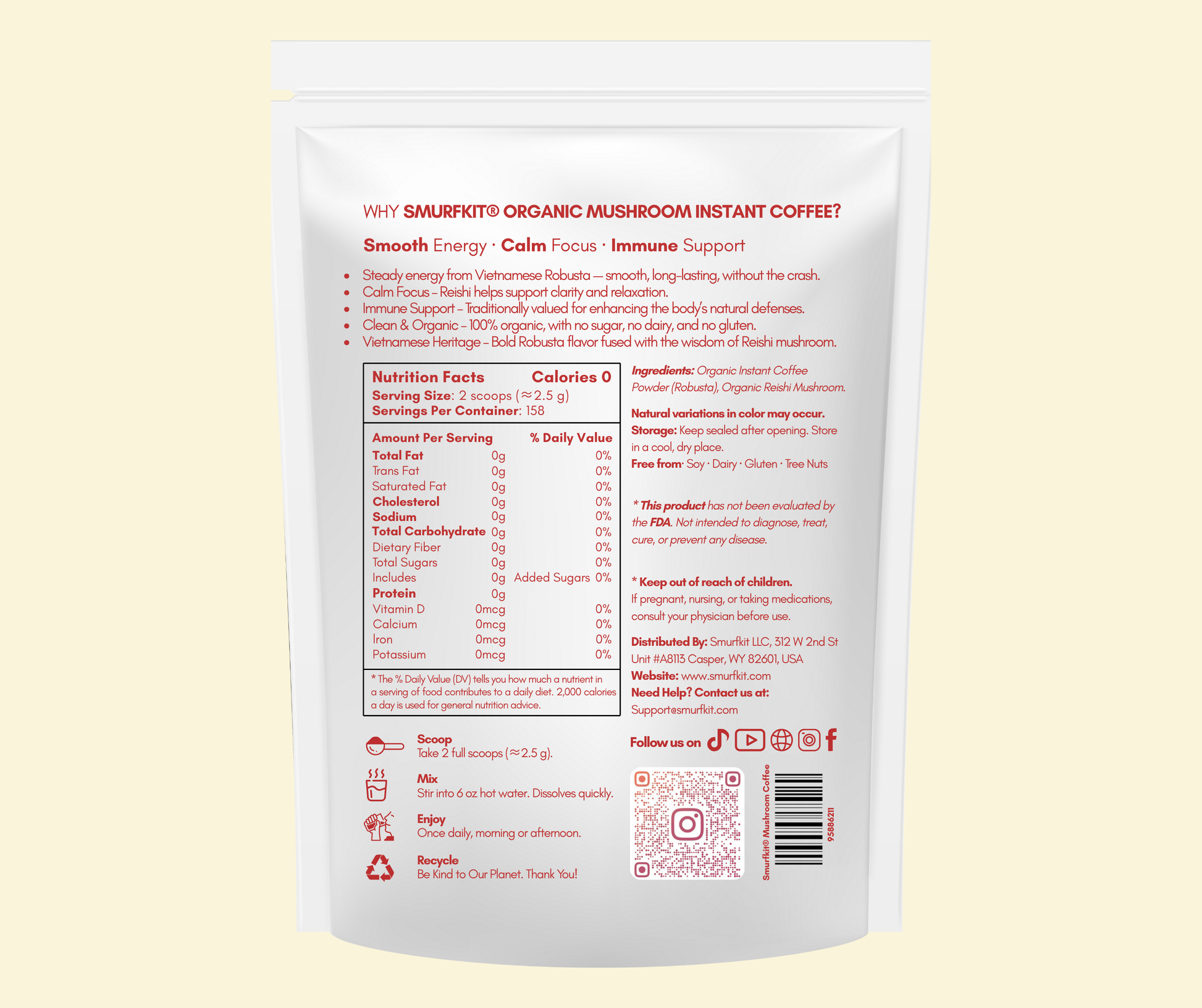 SMURFKIT® Organic Mushroom Instant Coffee – Smooth Energy · Calm Focus · Immune Support